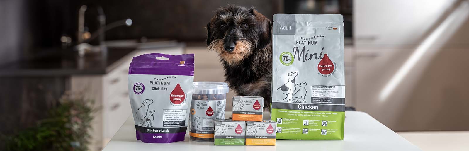 Quality Nutrition tailored to the needs of small dogs with PLATINUM Minis this range, like our classic size dog food is also lovingly prepared with FSG (Fleischsaftgarung).